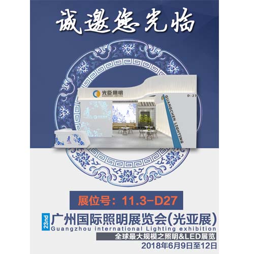 瀏覽:-第23屆廣州國際照明展覽會(又稱:光亞展)于2018年6月9日-12日,在廣州琶洲展館舉行。光臣照明每年也會參與這一行為盛事。我們在B區(qū)11.3-D27展位恭候您的光臨。