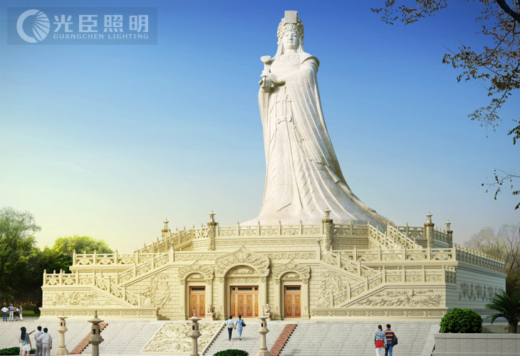 結(jié)合參照物體的亮化背景,媽祖像高度約30米左右,實(shí)現(xiàn)媽祖石像整體打亮,光臣照明為此定制一款大功率400W投光燈,DMX512金黃外控洗墻燈及LED藍(lán)光小射燈作為本次媽祖亮化燈具,在白總與光臣照明的同共努力下,效果呈現(xiàn)與設(shè)計(jì)方案效果還原度高達(dá)99%。