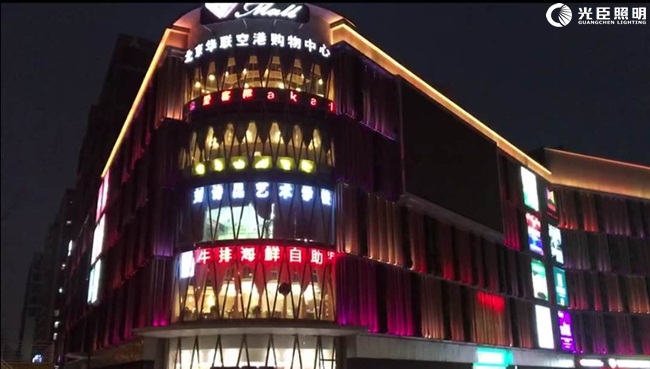 此次項目采用的是DMX512全彩大功率洗墻燈,使用電腦連機控制方案。施工前光臣工程師拿著樣品和控制器到現(xiàn)場展示,最終客戶喜歡這種極具呼吸感的不規(guī)則漸變效果。