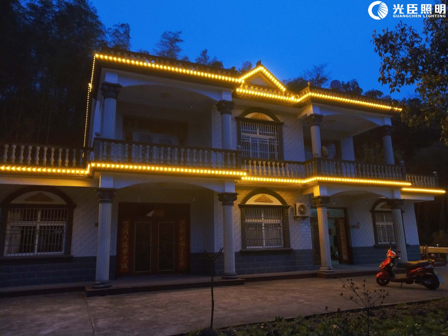 此次的項(xiàng)目是去年合作過一個(gè)地產(chǎn)樓盤蔡總自家房子亮化。通過上個(gè)項(xiàng)目,蔡總對(duì)我們產(chǎn)品質(zhì)量和服務(wù)都是豎拇指的。因?yàn)檫@次是鄉(xiāng)村的房子,蔡總那邊表示不要過于花哨,想要那種星星點(diǎn)點(diǎn)的感覺。有了上個(gè)項(xiàng)目的磨合溝通,業(yè)務(wù)員和蔡總這邊很默契,很快制定了方案,選定光臣直徑3公分點(diǎn)光源圍著樓體走一圈。燈光的色溫和布點(diǎn)位置與建筑形體、色彩和景觀空間完美結(jié)合,形成了極強(qiáng)的高端感受和靜謐氛圍。