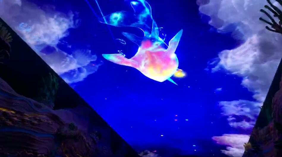 在海洋王國的入口處,有一個魚形狀的海洋大道,這是進(jìn)入海洋王國的通道,海洋大道的頂部是一個巨大的天幕,輪換播放著水母,鯊魚,海草等海洋生物的圖~如夢如幻,超漂亮!