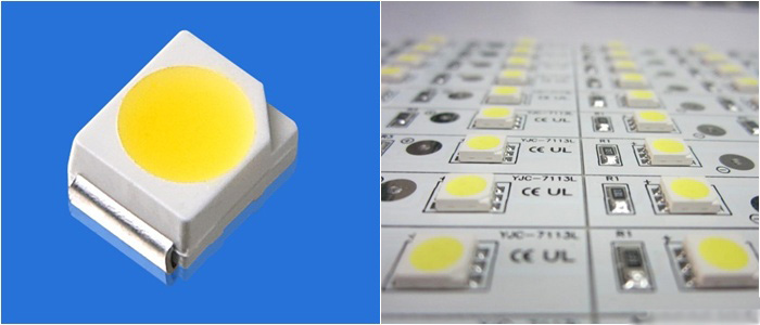 2.如果是貼片的話,如5050貼片,四個角中,有一個是有個缺角的,就是負(fù)極,對面就是正極了。