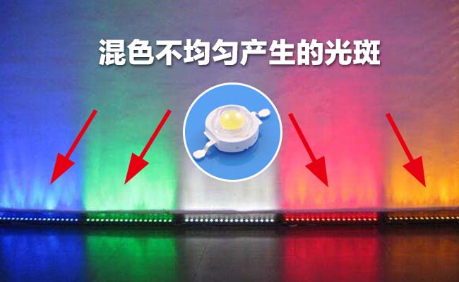 瀏覽:-洗墻燈在各大城市建筑亮化中幾乎成為了工程必備燈具,而大功率洗墻燈也成為了眾多客戶的追捧,經(jīng)常做亮化工程的朋友們都知道,過(guò)去的七彩大功率洗墻燈混色時(shí)總是會(huì)出現(xiàn)不同和度的光斑,不懂什么叫:“光斑”的朋友以下我用一張圖片來(lái)說(shuō)明。