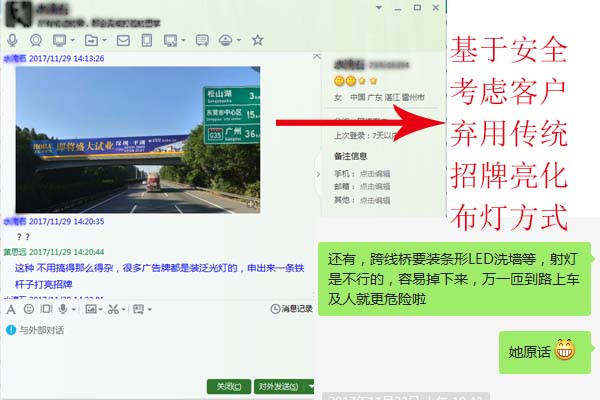 瀏覽:-分享一位來自廣東湛江的客戶咨詢,指定選用LED洗墻燈作為跨線橋廣告牌的亮化燈具,考慮到安全問題,客戶摒棄傳統(tǒng)泛光照明燈具專門選用了LED洗墻燈作為照明燈具使用。