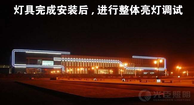 本次項(xiàng)目?jī)H運(yùn)用了2819線條燈作為亮化燈具,那么有朋友就有疑問(wèn)了,中間部份是點(diǎn)光源吧?其實(shí)不然,中間部份的效果是短尺寸的2819線條燈做成的。一眼望去就像一條通往著全國(guó)各地的鐵路一樣,此亮化效果的寓意相當(dāng)特別。
