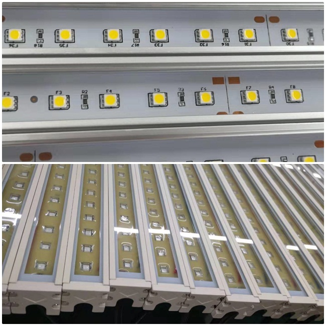 1、看焊點。正規(guī)的led線條燈廠家生產(chǎn)的LED燈條是采用SMT貼片工藝,用錫膏和回流焊工藝生產(chǎn)的。因此,LED燈條上的焊點比較光滑而且焊錫量不會多,焊點呈圓弧狀從FPC焊盤處往LED電極處延伸。而山寨版LED燈條的焊點焊錫量不均勻,多呈一個圓點包住焊腳,同時會有不同程度的錫尖出現(xiàn),這是手工焊接的典型現(xiàn)象。