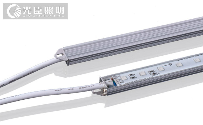 另外,由于墻面能安裝線條燈的位置有限,所以選用了體積比較迷你的2011八段外控線條燈進(jìn)行安裝,中間部份選用3325貼片外控洗墻燈藏匿在墻縫中。