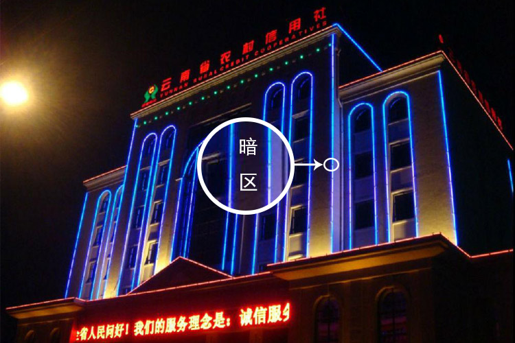 接下來(lái)再認(rèn)真的看一下以上建筑亮燈效果,細(xì)心的可以看出,燈與燈之間的安裝存在著空隙,這樣的空隙會(huì)讓建筑面的輪廓效果大大減分。