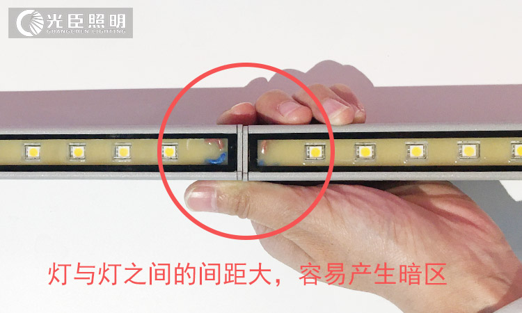 但有一點(diǎn)大家有要記住,LED線條燈并不是做到無(wú)縫對(duì)接就一定能達(dá)到無(wú)暗區(qū)效果,繼續(xù)看圖說(shuō)話,怎么樣做到的無(wú)暗區(qū)效果,其實(shí)很簡(jiǎn)單,就是燈與燈之間的距離縮短至點(diǎn)與點(diǎn)的距離,整體連貫就沒(méi)有黑色暗區(qū)。