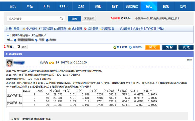 我們來說說光通量和功率的關(guān)系吧,需要專業(yè)術(shù)語描述的小編得讓工程師回答,您可以在線留言哦!話說回來想聽簡(jiǎn)單一點(diǎn)的小編就理一理這關(guān)系吧,光通量的大小是通過電功率的轉(zhuǎn)化。所以從圖中我們能看出,盡管這位仁兄家的燈珠功率大于客供燈珠,但是它所轉(zhuǎn)化出來的光通量遠(yuǎn)低于客供燈珠。總的來說,他家LED光源質(zhì)量有待改進(jìn),按光臣照明工程師的回復(fù)以及各大神底部留言:“這是打臉的節(jié)湊,啪啪啪的打臉聲...”